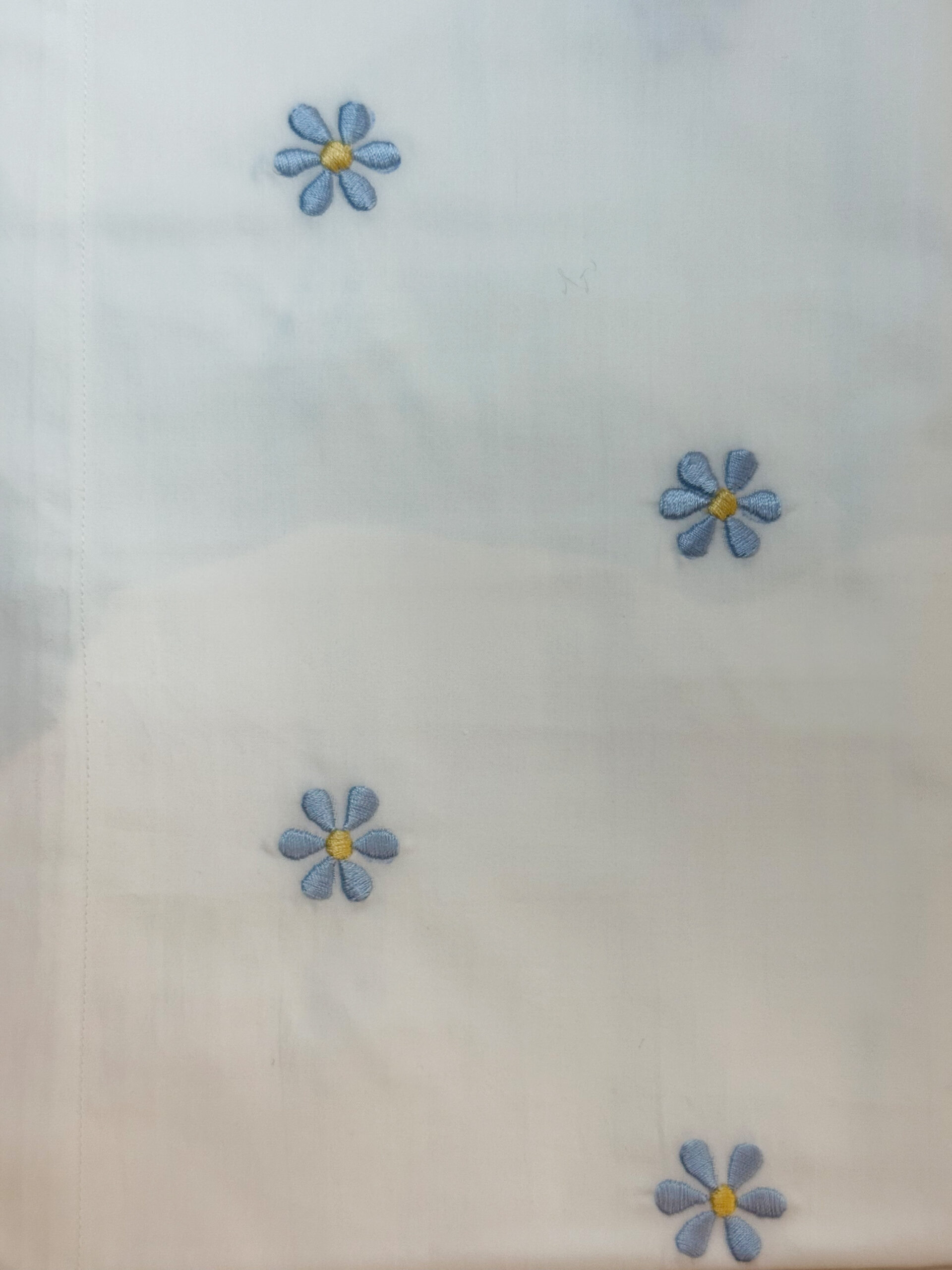 Bagni Volpi Euro sham (26″ x 26″) embroidered in Margherite on Egyptian cotton percale (460 thread count). This pattern can be made in a range of custom colors. Made in Italy.